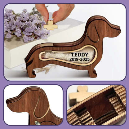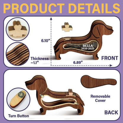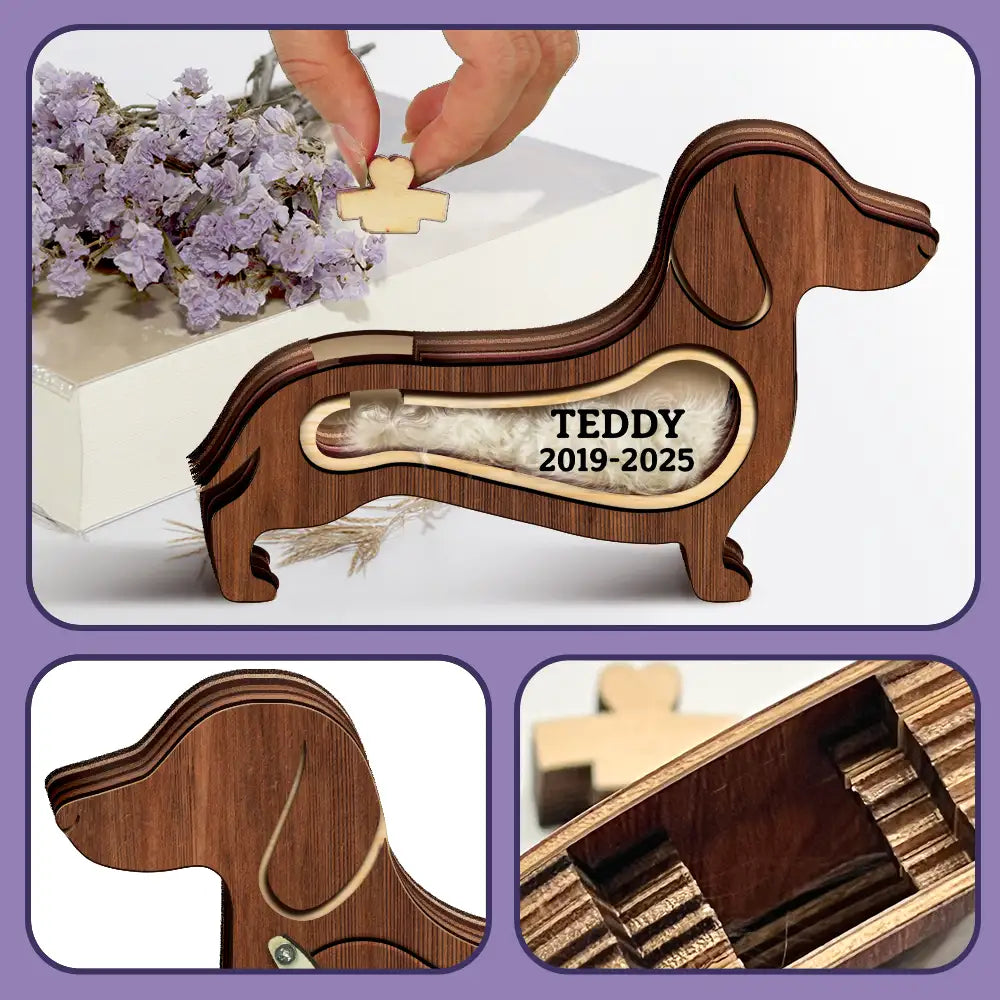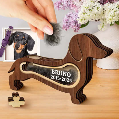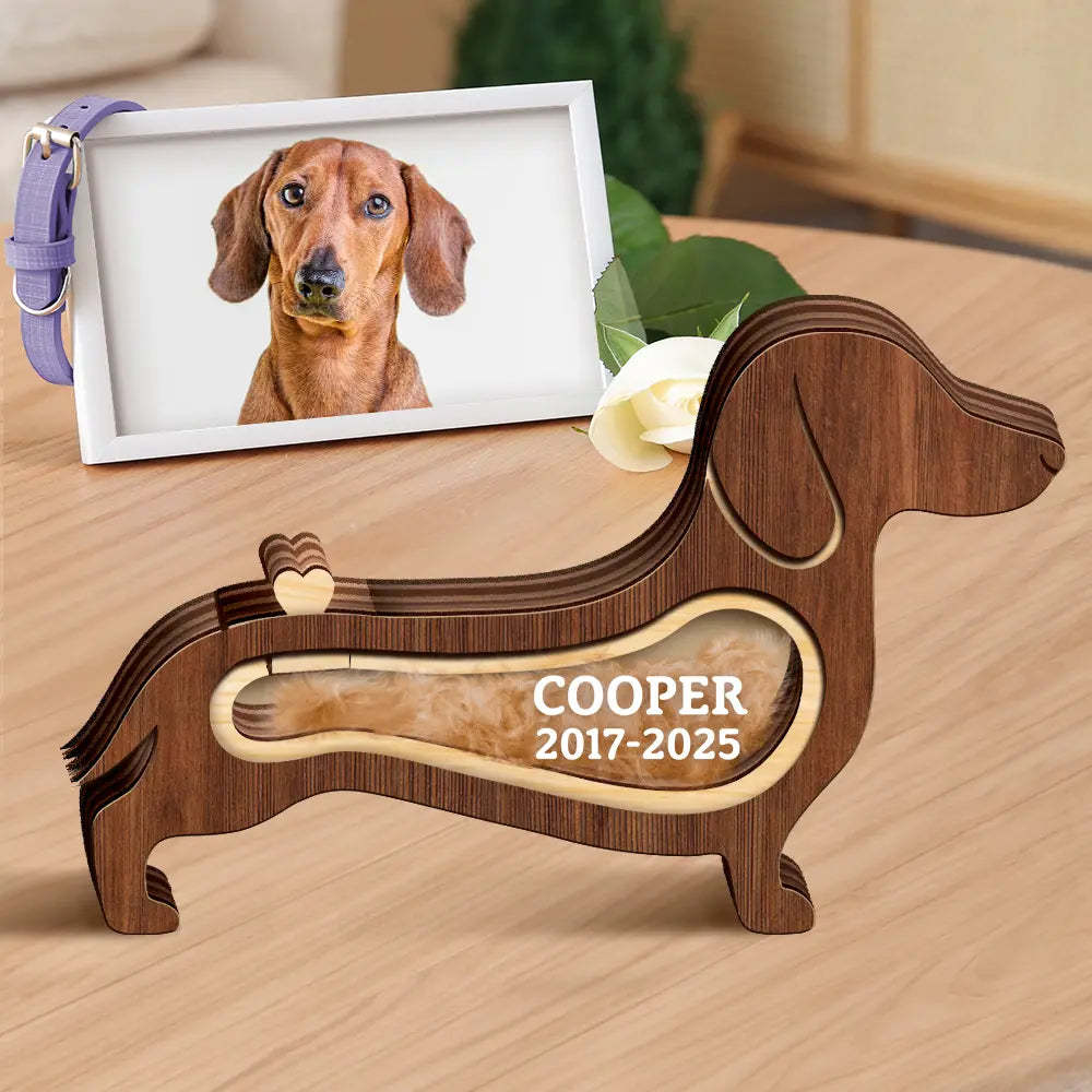 Crafted from premium wood, this custom pet-shaped shadowbox allows you to preserve a bit of your dog’s fur, photo, or tag inside - turning memories into a thoughtful keepsake that comforts the soul. Display it on your shelf or bedside to keep your dachshund’s spirit close.